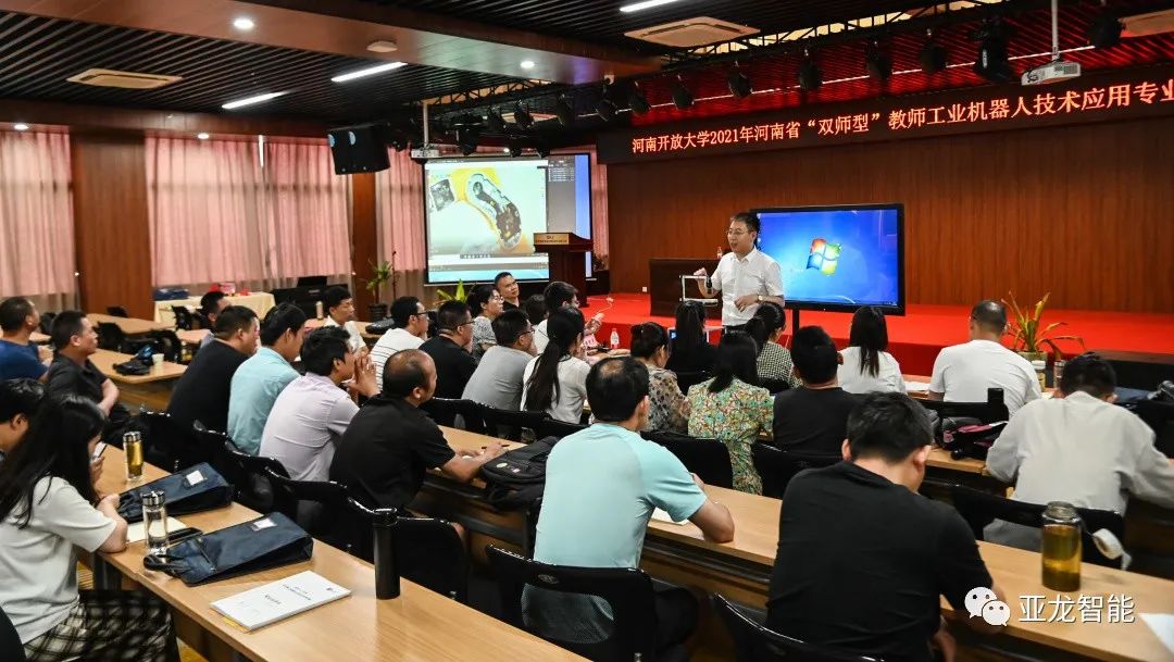 本次培訓班由河南開放大學主辦,亞龍智能裝備集團股份有限公司承辦、浙江亞龍教育裝備研究院協辦。按照1+X證書制度試點的相關要求,圍繞工業機器人裝調職業技能等級標準開展培訓,助力建設一支符合1+X證書制度試點要求的新時代職業教育“雙師型”教師隊伍,服務好職業教育高質量發展。