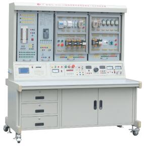 實踐設備由實踐屏(內置電源與各種接口)、實踐桌、實踐儲物柜三大部分組成。實踐臺雙層亞光密紋結構,表面經過噴塑處理,提高防銹、絕緣性能,實踐屏上部裝有日光燈照明裝置;實踐屏底部電源箱的輸出部分,輸出外用電源為實踐所用,電源箱左側為實驗管理器部分,具有時鐘、定時提醒、定時上電、定時切斷電源功能;電源箱的布局依次為電源保護裝置、電源指示、控制裝置、信號接口、電源輸出;實踐屏上部的不銹鋼管材與電源箱體上的型槽組合成通用掛板固定結構;改變實踐內容需要移動掛板時,可方便地在型槽中移動,以便更好地配合實踐;實踐桌桌面采用25mm麻灰色高密度層壓板封邊特制,有效提高絕緣等級;實驗桌底部裝有至少4個導向輪,方便實踐臺架移動;實踐儲物柜與實踐桌設為一體,采用標準結構和抽屜式,左側有3層帶鎖抽屜,用于存放工具以及實踐資料;儲物柜右側為雙拉門式設計,抽屜與柜門上均設有黑色凹陷式拉手。
