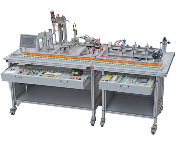 亞龍YL-235F型光機電一體化實訓考核裝備整體結構采用開放式和拆裝式,能方便地更換模塊,按具有生產性功能和整合學習功能的原則確定模塊內容,使教學或競賽時可方便的選擇需要的模塊。主要由鋁合金導軌式實訓臺、下料單元、三自由搬運機械手單元、步進輸送檢測單元、重型機械手單元、分揀單元等,同時將PLC技術、氣動系統、步進控制系統、旋轉編碼器反饋系統、變頻器系統、觸摸屏系統、模擬量技術、網絡技術、模擬量傳感器技術從而組成自動加工、裝配、分揀生產線,真實呈現自動生產線的加工過程,構成一個典型的機電一體化設備的機械平臺。用于教學,可按工作過程導向,工學結合的模式規劃教學活動。